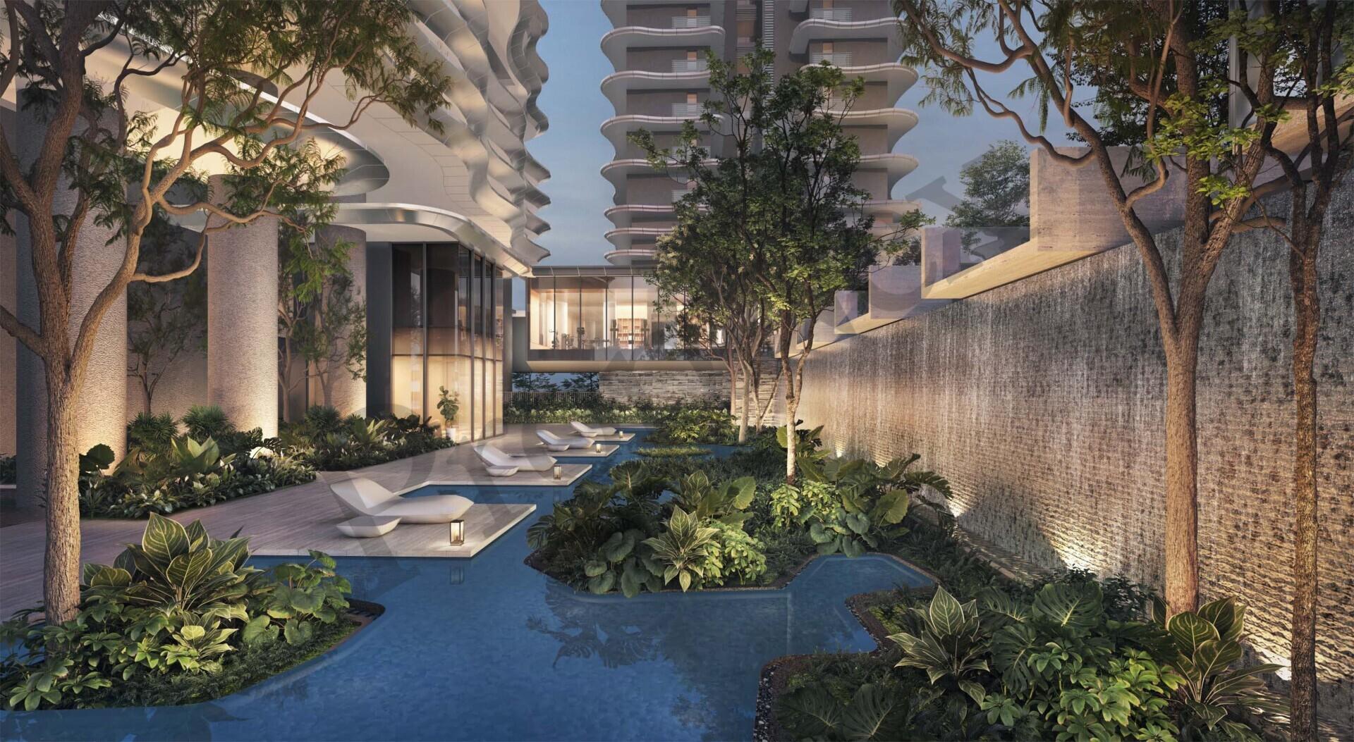 2 blocks of 62-storey residential development and 1 tower of 36-storey serviced apartments with restaurants, supermarket and early childhood development centre.